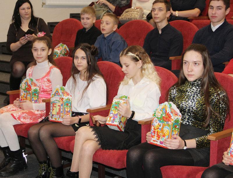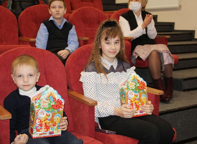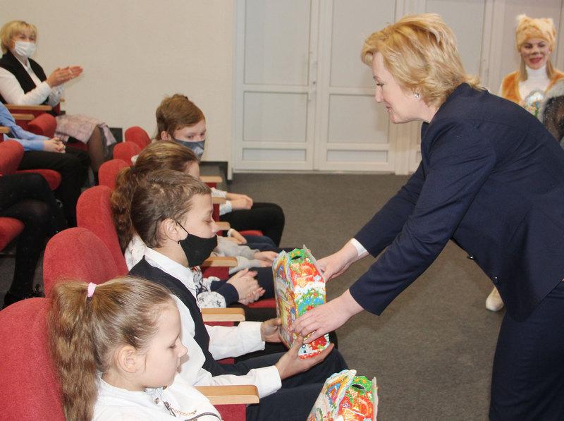 Александра Михеенко вручила детям сладкие подарки.