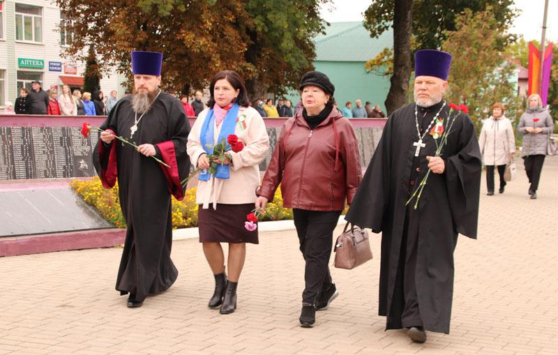 В торжественном мероприятии приняли участие заместитель командующего военно-воздушными силами и войсками противовоздушной обороны Республики Беларусь по идеологической работе, начальник управления, полковник Анатолий Булавко, руководители района, представители организаций и общественных объединений, духовенства, учащиеся школ города. Они собрались у мемориала, чтобы отдать дань уважения и почтить память тех, кто ценой своей жизни обеспечил нам мир и свободу на земле. Цветы к мемориалу погибшим воинам были возложены от Министерства обороны Республики Беларусь, районного исполнительного комитета, районного Совета депутатов, гостей и костюковчан.