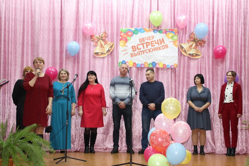 В актовом зале школы собрались выпускники разных лет, педагоги. Вечер встреч и воспоминаний о школе был насыщенным и интересным. Силами педагогов и учеников был подготовлен концерт.