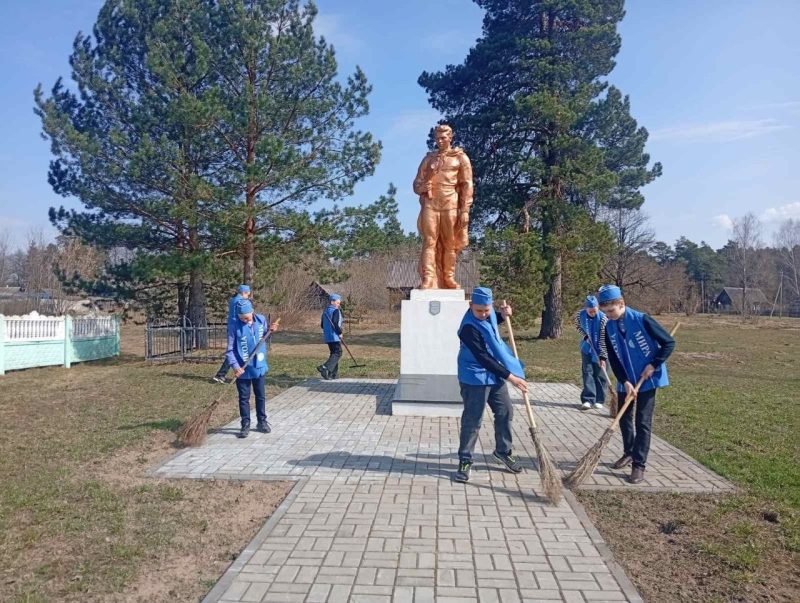 Одно из главных направлений этой работы — забота о памятниках и воинских захоронениях. Ежегодно учащиеся школы принимают участие в акции «Обелиск». Ребята наводят порядок у братских могил и памятников воинам, погибшим в годы Великой Отечественной войны: убирают прошлогоднюю листву, подметают дорожки. Это не просто субботник — это дань уважения тем, кто ценой своей жизни отстоял мирное небо над головой.