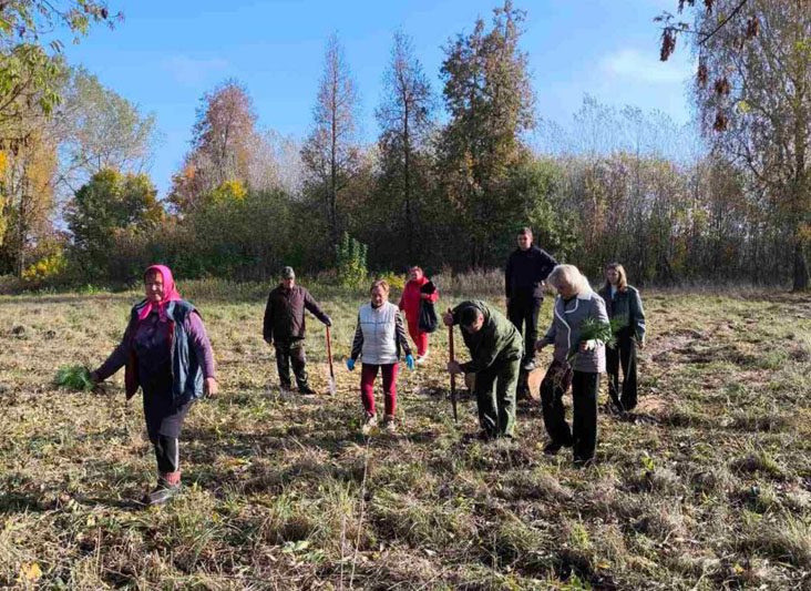 Общими усилиями было высажено 30 саженцев сосны и столько же елей, которые предоставило Белодубровское лесничество.