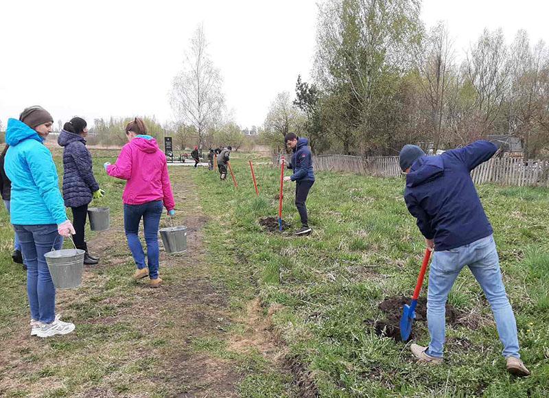 В честь 75-летия Победы советского народа в Великой Отчественной войне в День труда, 1 мая, перед братской могилой была высажена аллея рябин. В таком полезном деле участие приняла активная молодежь из числа членов БРСМ ГЛХУ «Костюковичский лесхоз». Вместе с работниками лесхоза они сажали деревья, благоустраивали территорию массового захоронения гражданского населения, закрепленным за учреждением.