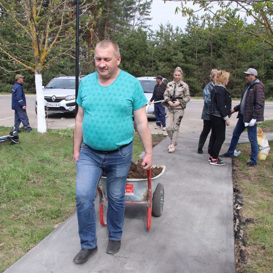 Руководство района, сотрудники РОВД и учащиеся Белынковичской школы, воспитанники военно-патриотического клуба «Зубр» благоустраивали сквер, где расположен памятный знак в честь погибших воинов.