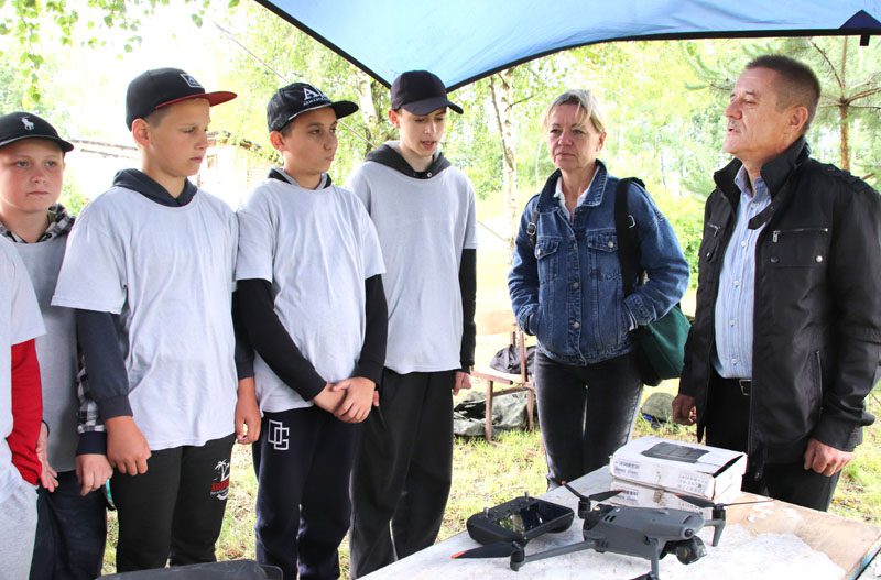 По словам Кирилла Сергеевича, военные привезли в лагерь «Зубр» некоторые образцы вооружения, которые ребята с интересом исследовали. Стрелковое оружие, среди которого автоматы и пистолеты, а также дроны, или квадрокоптеры, – все это можно было не только посмотреть, но и потрогать, а пистолеты даже разобрать и снова собрать, а бронежилет и шлем примерить, то есть почувствовать себя настоящими военнослужащими Вооруженных Сил Беларуси. К слову, оружие не боевое, а учебное, поэтому никакой опасности не представляет.