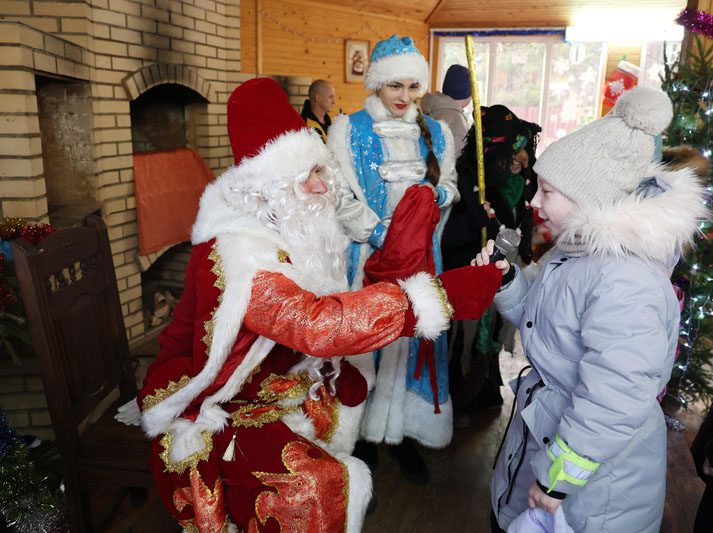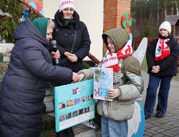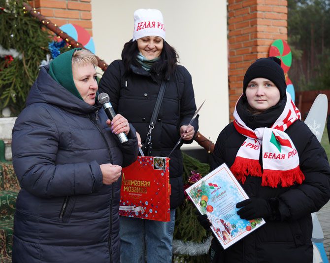 В гостях у Деда Мороза председатель РО ОО «Белая Русь» Лариса Герасимова поздравила детей с праздниками и вручила дипломы и подарки победителям конкурса: Никите Кривошееву, Егору и Андрею Медведевым, Ивану Костенкову – в номинации «Дети до 10 лет», а также в номинации «Дети с 10 до 14 лет» – Екатерине Аравенковой, Ангелине Михальченко, Ксении Королевой.
