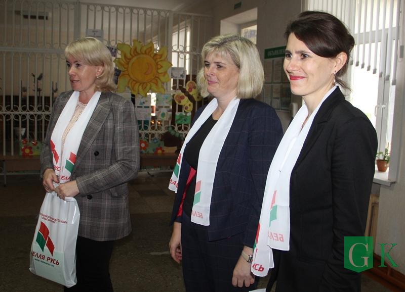 В канун Дня знаний заместитель председателя райисполкома Валентина Манушенко, председатель районной организации РОО «Белая Русь» Оксана Сидоренко, начальник отдела по образованию, спорту и туризму райисполкома Елена Хомченко посетили учреждения образования города, вручили подарки детям и поздравили их с началом учебного года.