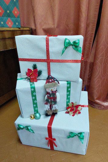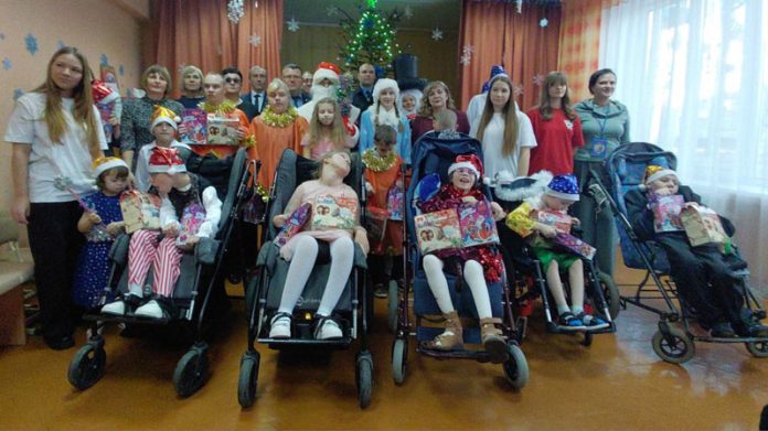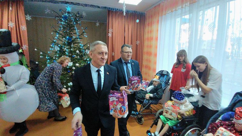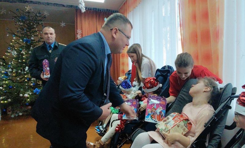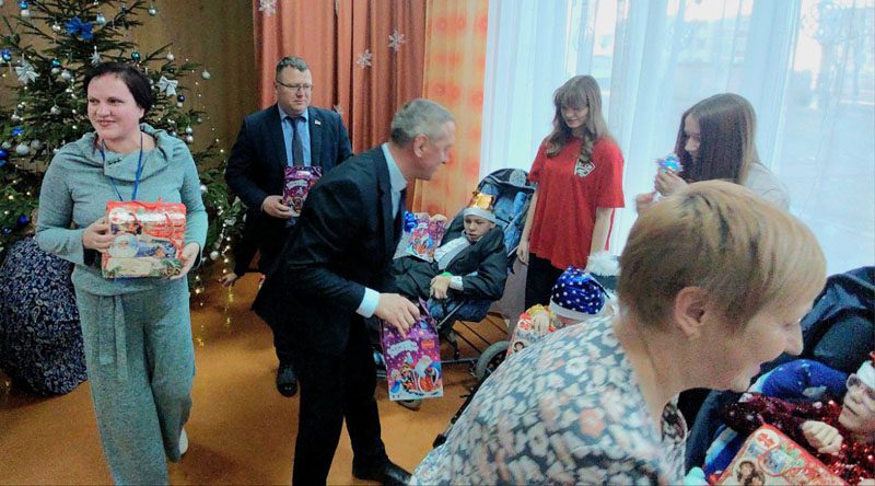 Лариса Элеоноровна, присоединившись к поздравлениям, передала детям огромные коробки с игрушками и развивающими играми, а также сладкие новогодние угощения.