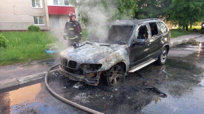 Автомобиль BMW X5 горел открытым пламенем. Владелец транспортного средства находился на улице.
