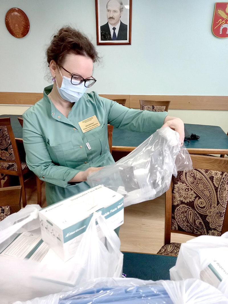 Председатель организации Тамара Дашкевич передала главному врачу ЦРБ Александру Лобову пакеты со средствами индивидуальной защиты: 1000 масок, 100 одноразовых халатов и 50 лицевых щитков. Главврач поблагодарил БОКК за поддержку и отметил, что ситуация с коронавирусом в нашем районе контролируема.