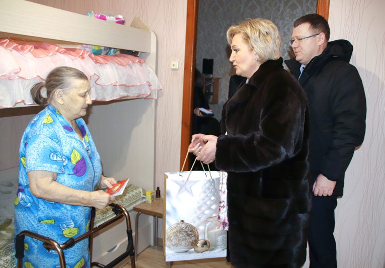 В преддверии Нового года глава района Вячеслав Моксачев, депутат Палаты представителей Национального собрания Республики Беларусь Александра Михеенко, член Совета Республики Национального собрания Республики Беларусь Игорь Сергеев навестили Василия Марковича Лосева, бывшего узника фашистского концлагеря, и Прасковью Кузьминичну Коваленко, родившую и вырастившую десятерых детей, и Марию Титовну Воробьеву, члена семьи погибшего в годы Великой Отечественной войны, а ныне подопечную отделения круглосуточного пребывания для граждан пожилого возраста и инвалидов в деревне Пролетарское.