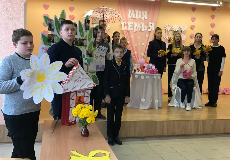 Так, в районной государственной гимназии мероприятие было направлено на развитие представлений о роли семьи в обществе, о приоритетной деятельности государства по поддержке семьи. Гимназисты в творческих формах выполняли тематические задания, участвовали в конкурсе «Важное слово», работая в группах, определяли качества, которые позволяют семье жить в любви и согласии, рассуждали и делились мнениями о семье, семейных ценностях, роли семьи в современном мире.