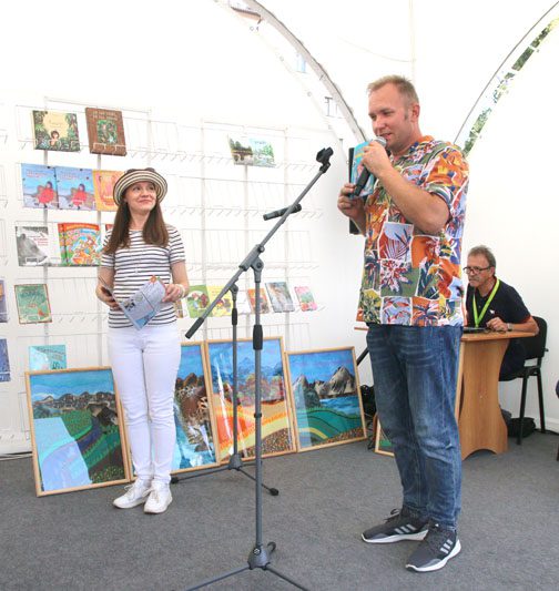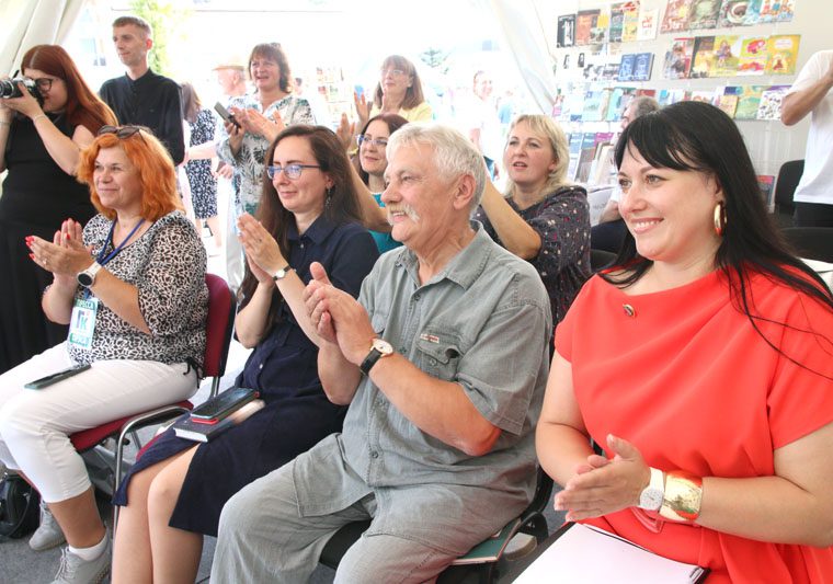 А 1 верасня ўжо на галоўнай сцэне прадстаўлялі сваю творчасць беларускія пісьменнікі, паэты-песеннікі, барды, якія за сотні кіламетраў прыехалі ў слаўны горад Івацэвічы.