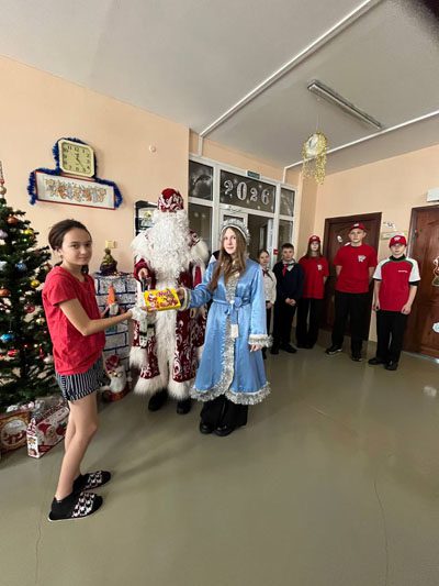 А 12 января активисты отправились в педиатрическое отделение Костюковичской центральной районной больницы, чтобы передать подарки ребятам, вынужденным проводить праздник в больничной палате. Волонтеры отряда «Добрые сердца» и пионеры ГУО «Средняя школа №2 г. Костюковичи» совместно с первым секретарем Костюковичского районного комитета ОО «БРСМ» Елизаветой Андрейченко устроили для маленьких пациентов небольшой, но душевный праздник.
