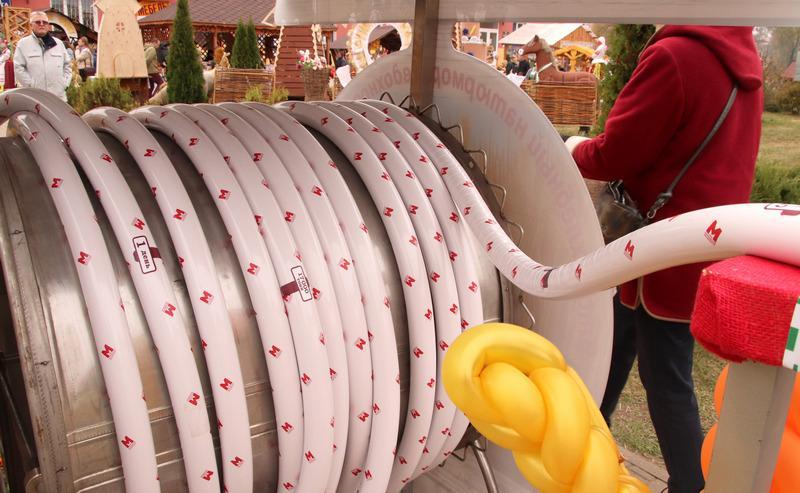 Удивляли сегодня организации и предприятия Могилевской области. Так, именно к «Дажынкам» Могилевский мясокомбинат изготовил колбасу, длина которой — более 50 м. На предприятии уверены — хлеб всегда вкуснее с колбасой.