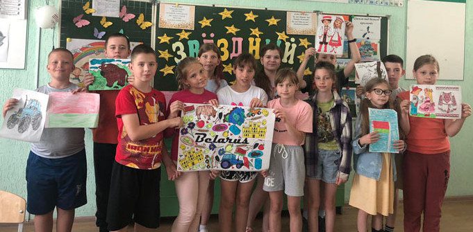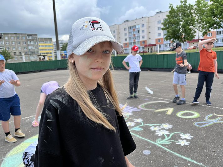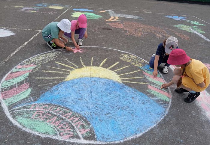 В конкурсе рисунков на асфальте «Зямля пад белымi крыламi» с большим удовольствием приняли участие ребята всех отрядов.