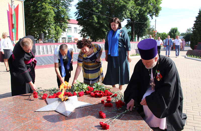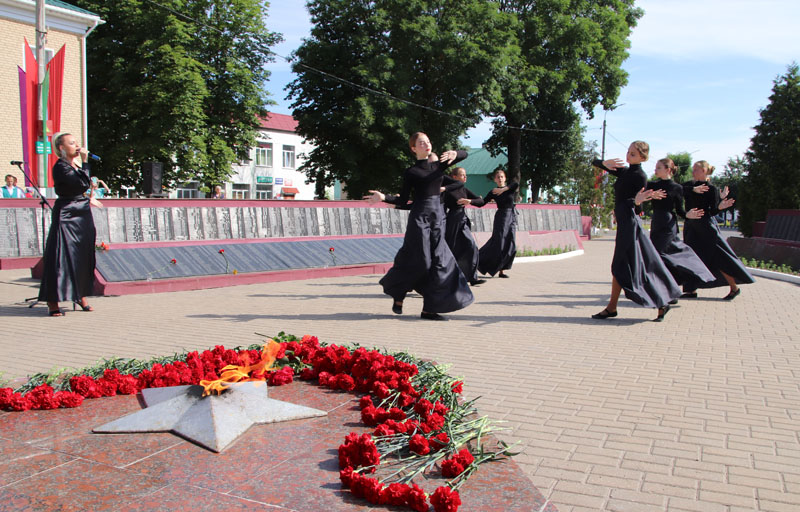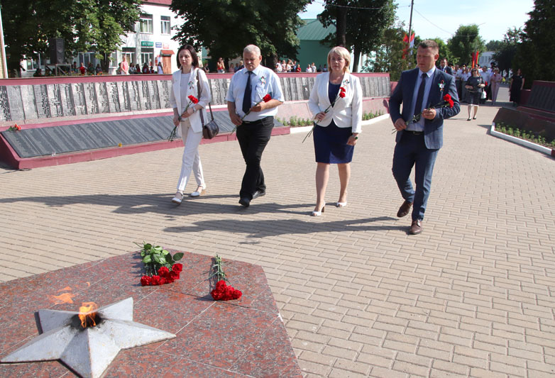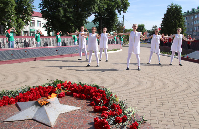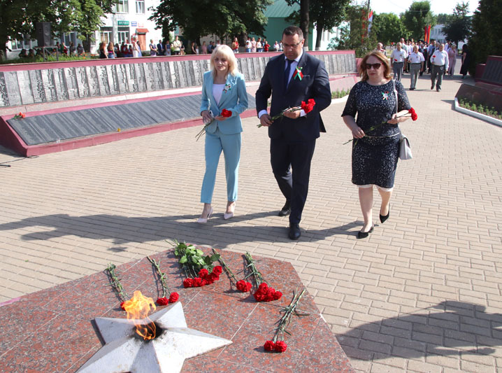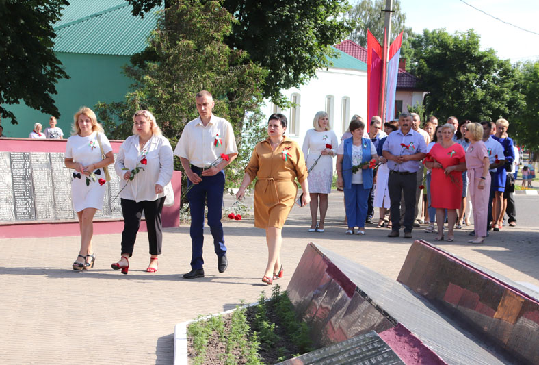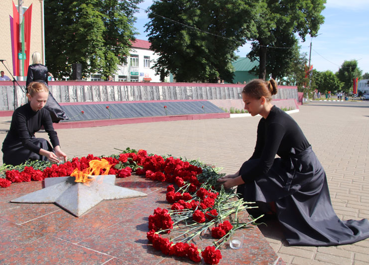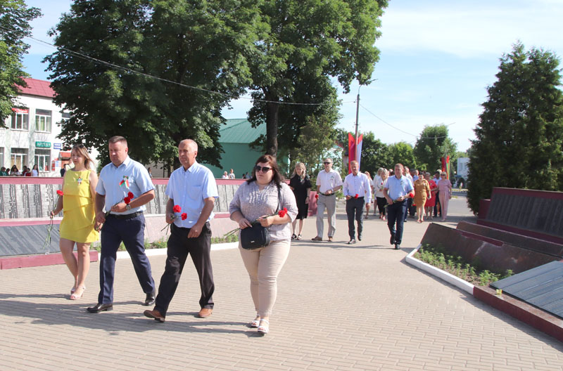 По традиции на Костюковщине мероприятия начались у мемориала с возложения цветов, минуты молчания.