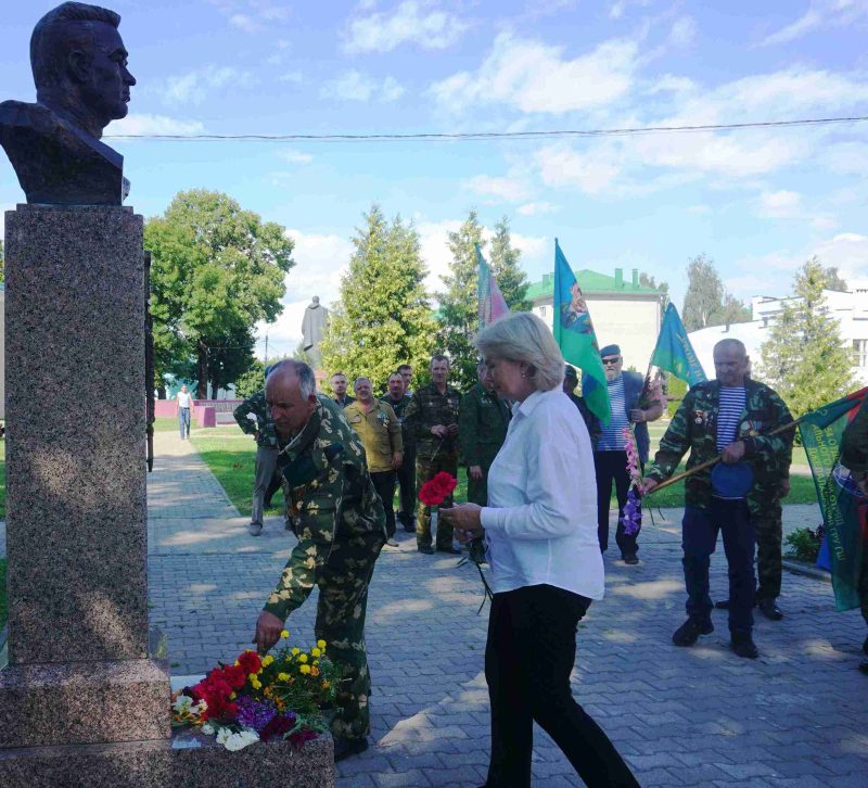 Поздравить виновников торжества с праздником и возложить цветы к мемориалу и бюсту Маргелова пришли заместитель председателя райисполкома Валентина Манушенко, военный комиссар района Юрий Исмаилов, настоятель Свято-Крестовоздвиженского храма отец Сергий.
