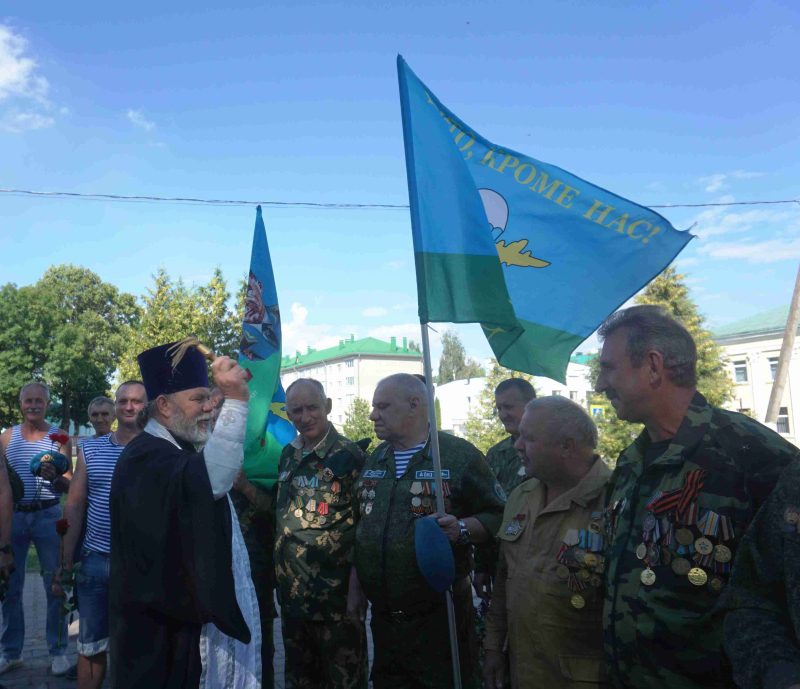 Обращаясь к собравшимся, настоятель Свято-Крестовоздвиженкого храма отец Сергий подчеркнул, что не зря в один день отмечаются сразу два праздника – День Воздушно-десантных войск и церковный праздник Ильин день. Он окропил десантников святой водой с пожеланиями здоровья, счастья, семейного благополучия и духовного совершенствования.