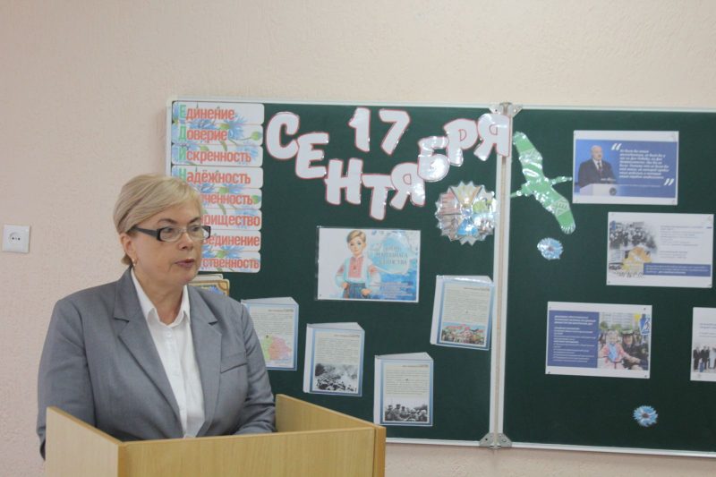 Валентина Ивановна подчеркнула, что та Беларусь, в которой мы живем сегодня, территориально сложилась именно благодаря событиям сентября 1939 года, подробно рассказала об истории праздника и его значении для каждого из нас.