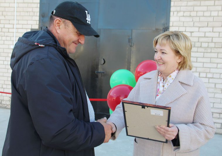 Александра Михеенко вручила Благодарственные письма строителям филиала № 3 «Цемстройремонт», которые принимали участие в реконструкции объекта: бетонщику Анатолию Каргатову, водителю погрузчика Леониду Потапенко, монтажнику санитарно-технических систем и оборудования Валерию Солтанову.