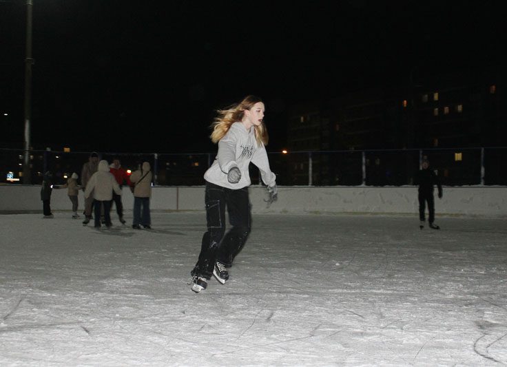 Этот каток пользуется популярностью у жителей нашего города. Как в выходные, так и в будни там всегда хватает желающих покататься.