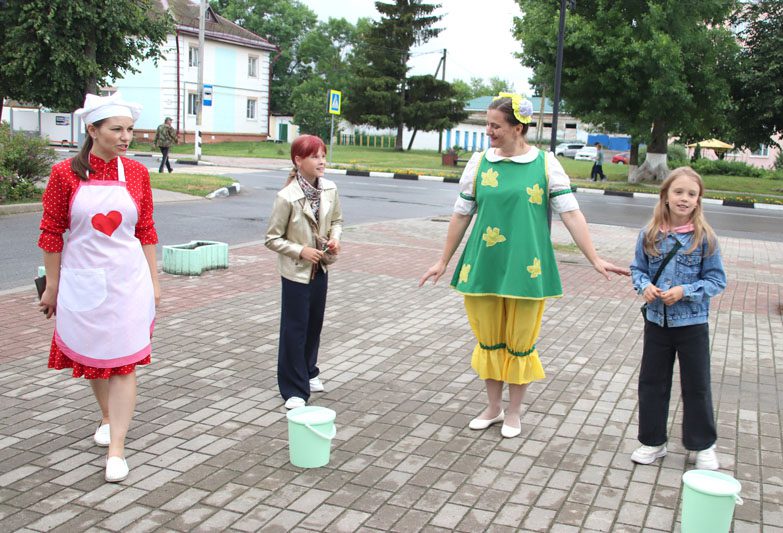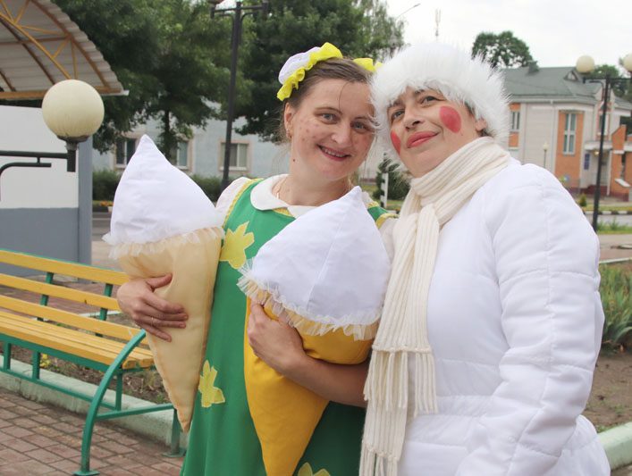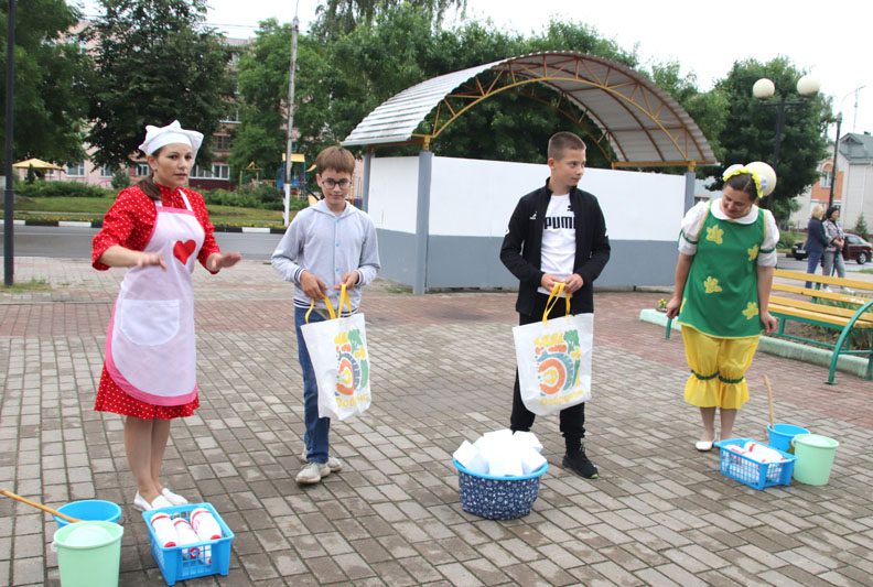 На протяжении всего вечера ребята в форме игры делали мороженое. Было увлекательно и интересно. Полакомиться этим десертом и другими сладостями, пирожками можно было в торговой палатке от райпо.