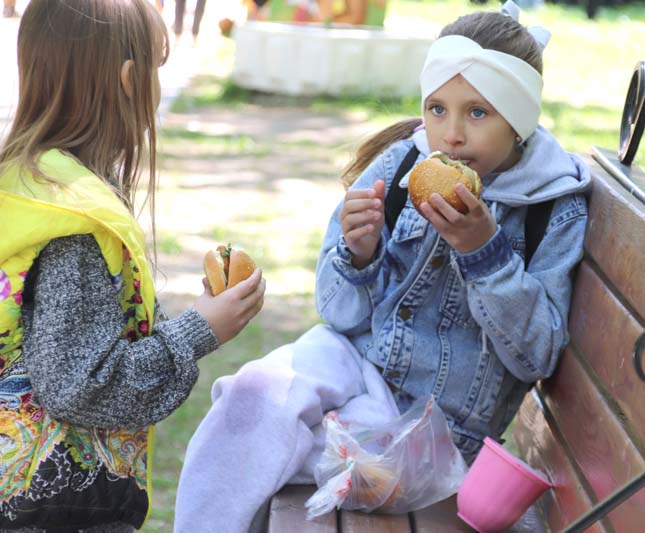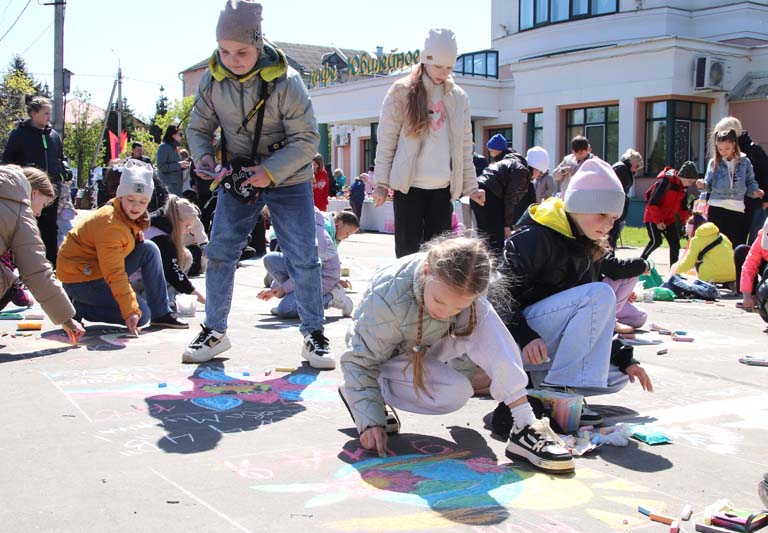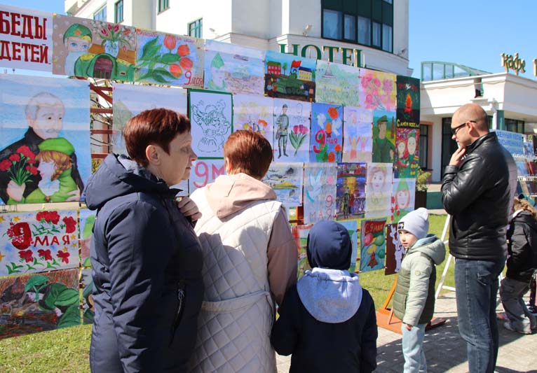 Мероприятия в рамках празднования Дня Победы продолжились на площади амфитеатра, где развернулись многочисленные выставки, фотозоны, интерактивные и тематические площадки. Привлекали внимание горожан также боди-арт, историческая квест-игра «Победными тропами», конкурс детского рисунка на асфальте «Я рисую мир!».