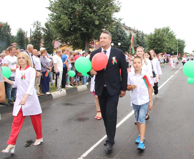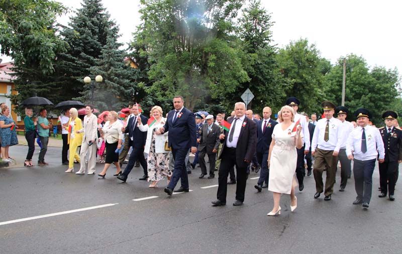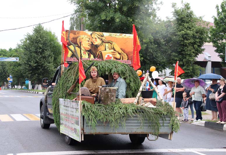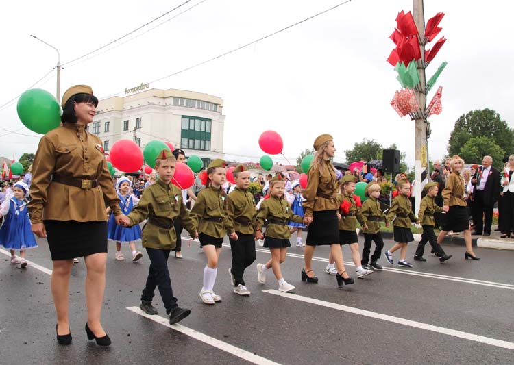 Оркестр, красочные колонны, автомобили, оформленные в соответствии с тематикой борьбы белорусского народа с вражескими войсками, велопробег — все это создало для участников и гостей неповторимую атмосферу праздника, в котором слились воедино бессмертие памяти о героическом прошлом, гордость за созидательное и мирное настоящее и готовность строить цветущее будущее мощной непобедимой страны.