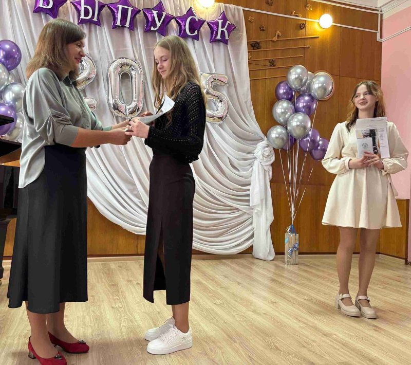 В районеКультураОбразованиеОбщество Фотофакт. Трогательный выпускной вечер в детской школе искусств От ГК - 31.05.2025 0 358 В этом году ДШИ выпускает 41 учащегося. Директор школы Анна Борисова поздравила ребят и вручила им аттестаты.
