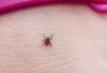 Обнаружив присосавшегося клеща, не паникуйте и не пытайтесь его раздавить. Аккуратно удалите его целиком с помощью специального крючка или нитяной петли. Важно не оставить в коже головку.