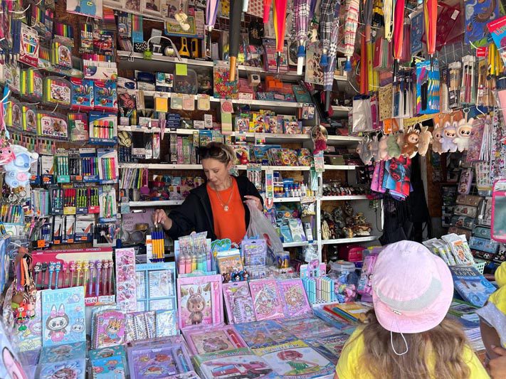 Самая яркая торговая точка на центральном рынке у ИП Анатолия Лукши, где мы тоже побывали. Родители, прислушиваясь к мнению детей, покупают им то, что для них удобней и комфортней.
