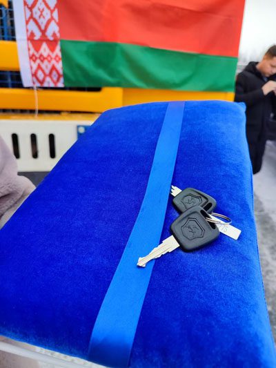 Рабочий визит Александра Довгало продолжился приятной миссией – вручением ключей от автомобиля. Стоит заметить, что Белорусский цементный завод постоянно пополняет свой автомобильный парк новой техникой. Так, генеральный директор холдинга Александр Довгало в торжественной обстановке вручил одному из лучших, опытных водителей предприятия ключи от нового автомобиля «Газон Next» Горьковского автомобильного завода.