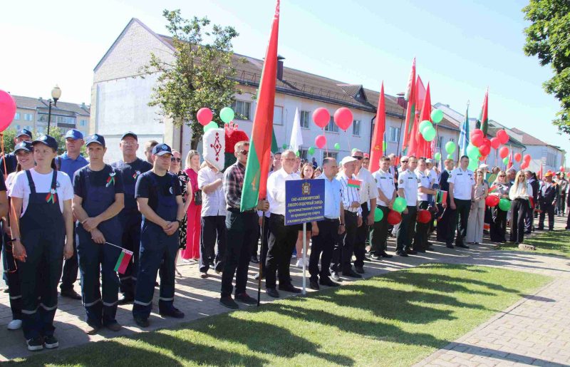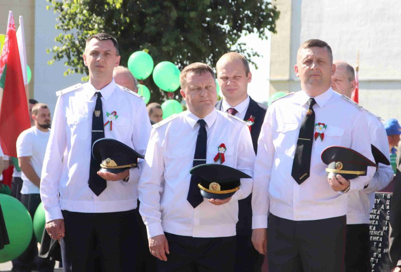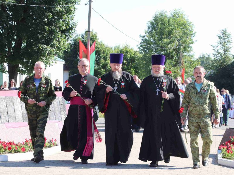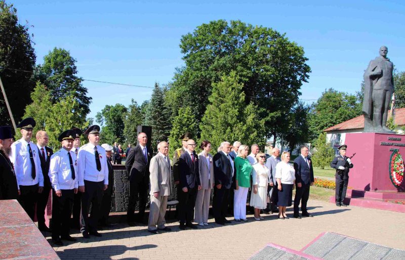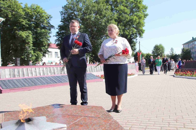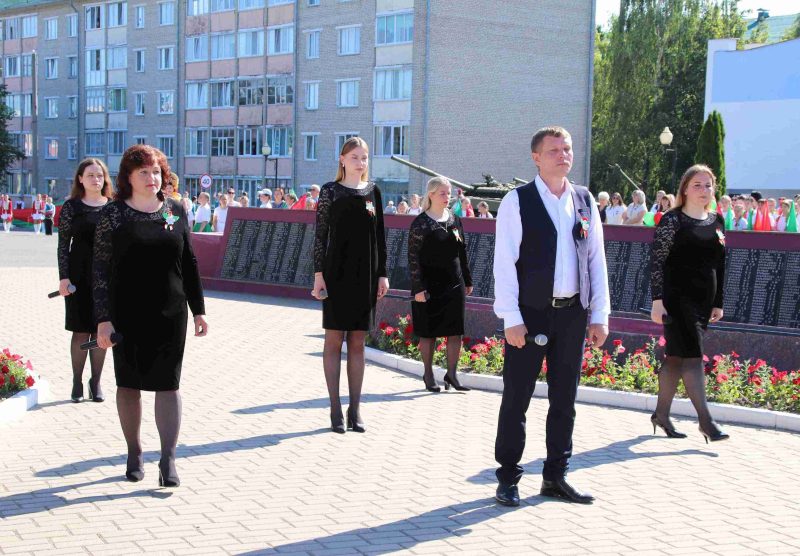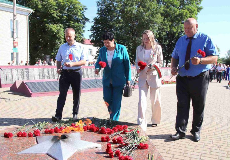 По традиции, марафон праздничных мероприятий стартовал у Мемориала. Торжественный митинг, посвящённый Дню Независимости Республики Беларусь «Прошлое – в наших сердцах! Будущее – в наших руках!» начался с возложения цветов к Мемориалу и Аллее Героев