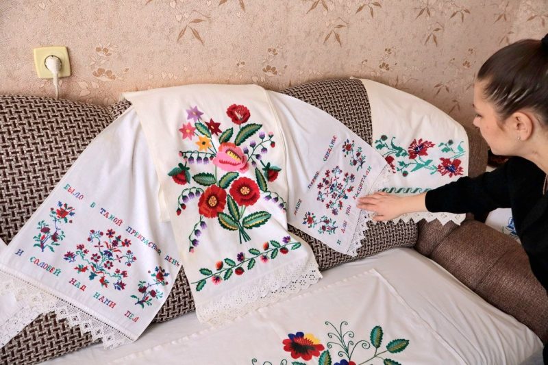 – Бабуля заўсёды вышывала з вялікай любоўю і стараннасцю. Яна верыла, што кожны шывок ніткі прыносіць у хату цяпло і святло, асабліва ў святы, – кажа Алеся Шаройка. – Я заўсёды захаплялася прыгажосцю рушнікоў. Прыязджаючы да бабулі, разглядала іх, любавалася.