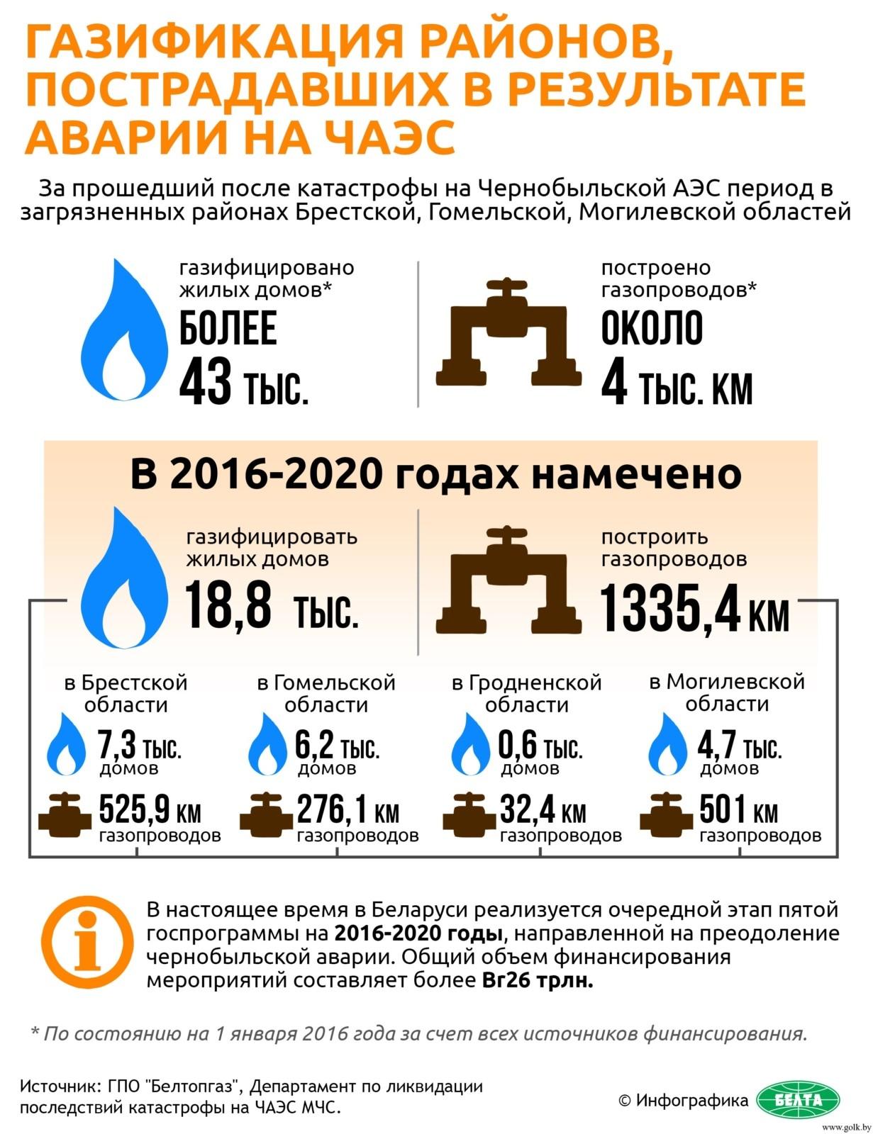 Общество Инфографика. Газификация районов, пострадавших в результате аварии на ЧАЭС От ГК - 26.04.2016 0 800 На снимке: инфографика. Газификация районов, пострадавших в результате аварии на ЧАЭС. На снимке: инфографика. Газификация районов, пострадавших в результате аварии на ЧАЭС.