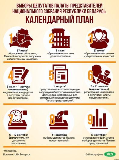 На снимке: инфографика. Выборы депутатов Палаты представителей Национального собрания Республики Беларусь. Календарный план.