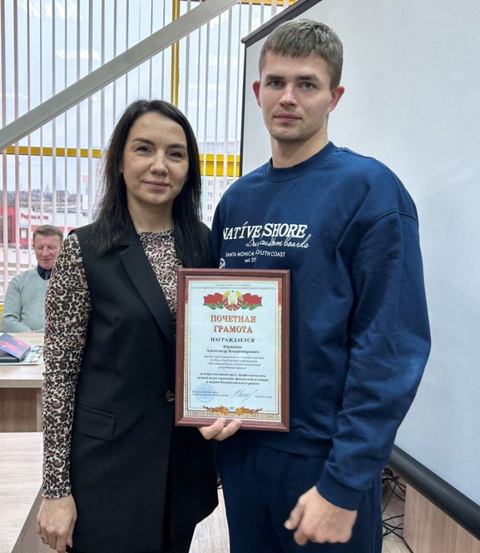 Почетных грамот сектора спорта и туризма райисполкома удостоены Людмила Козлова, заместитель директора по административно-хозяйственной работе ФОЦ, и Александр Юрченко, тренер-преподаватель по легкой атлетике ДЮСШ.