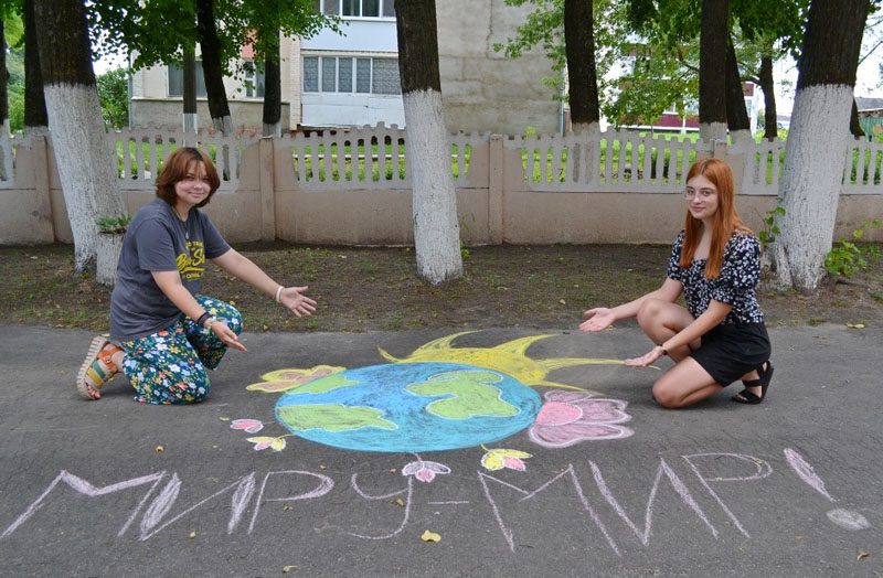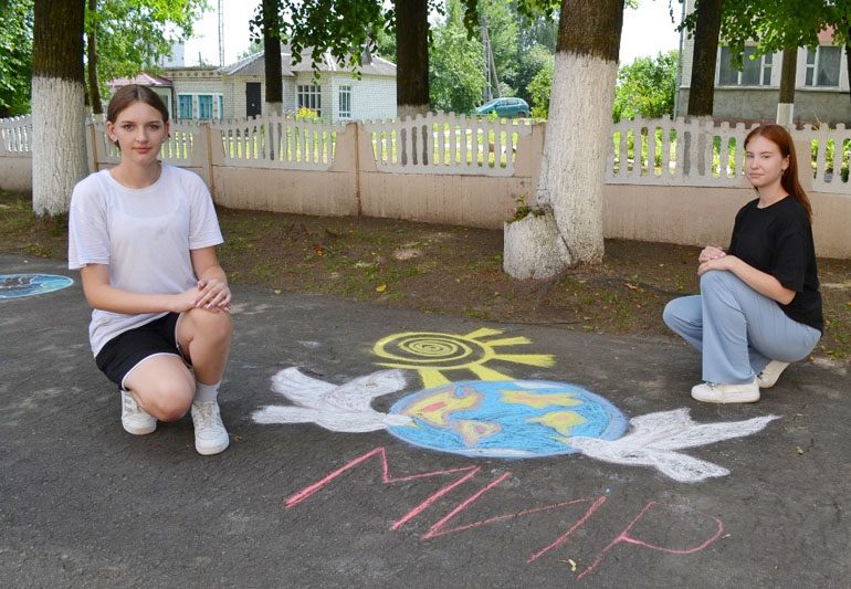 В завершение дня на территории школы был организован творческий вернисаж на асфальте «Пусть всегда будет мир». Дружеская атмосфера и теплая погода способствовали активному творчеству ребят и созданию ярких рисунков и композиций. В своих работах юные художники изобразили мирное небо, природу родного края, символику Республики Беларусь.