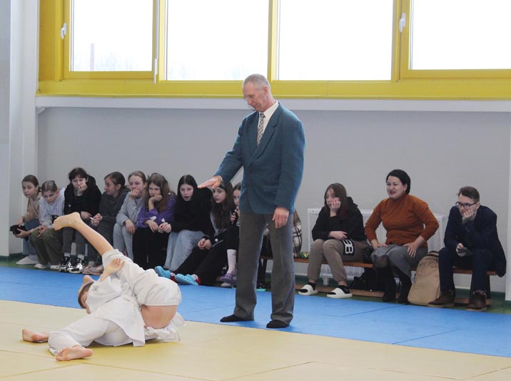 Старший тренер-преподаватель отделения дзюдо и главный судья соревнований Александр Геращенко во время открытия первенства поприветствовал ребят и пожелал им удачи.
