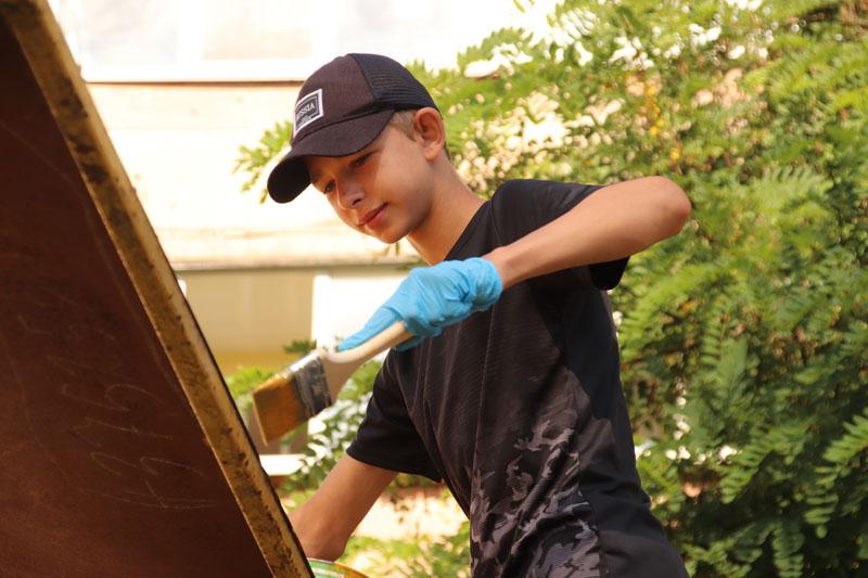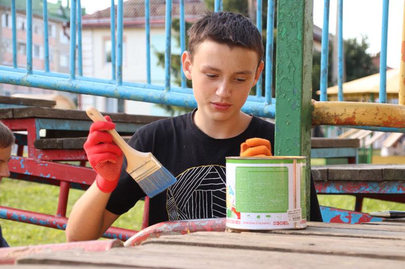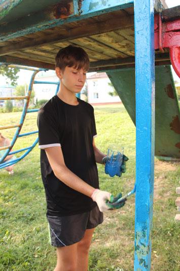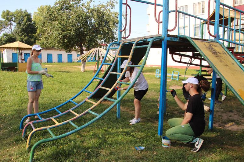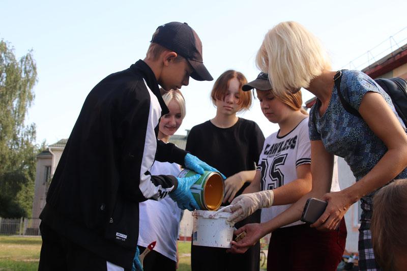 В этот раз инициатором проведения акции выступила комиссия по делам несовершеннолетних, и потому в благоустройстве игровой площадки задействовали детей, с которыми проводится индивидуальная профилактическая работа. Вместе с детьми участие в покраске принимали родители, а также педагоги, представители инспекции и комиссии по делам несовершеннолетних, БРСМ, Молодежного парламента и сектора спорта и туризма.
