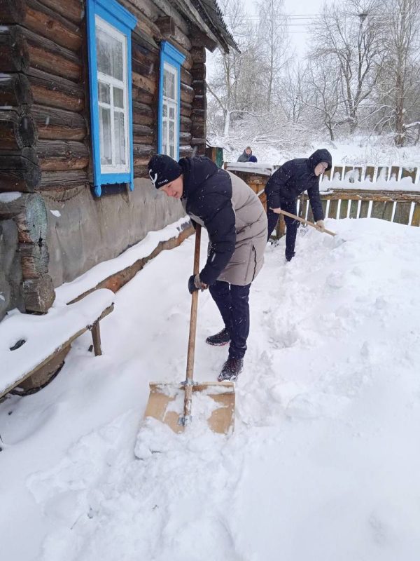 Члены волонтерского отряда «Доброе сердце» ГУО Муринборская средняя школа Костюковичского района» вышли на помощь одиноким пожилым людям. Ребята помогли очистить снег возле дома, во дворе, а также принесли бабушке дров.