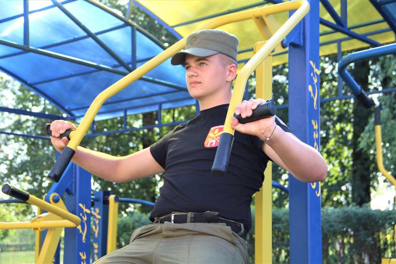 Сегодня здесь шумно: курсанты готовятся встречать гостей из войсковой части 6713 города Могилева. Все, как обычно, по плану: ребята разбиваются на подгруппы, за каждой закрепляется наставник и начинают командно работать. Палящее солнце вовсе не помеха, на школьном стадионе жарко и без того.