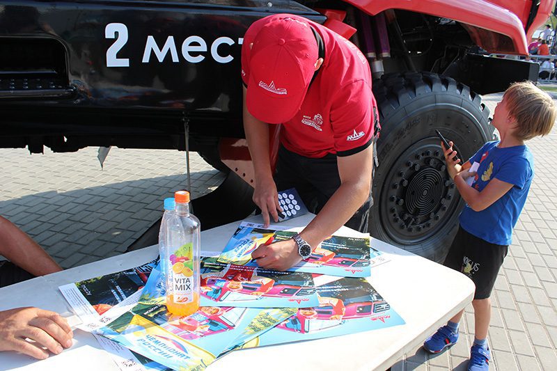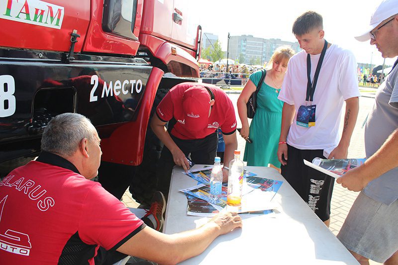 Многие собрались посмотреть легендарный спортивный грузовик МАЗ, который с 2010 года принимал участие в престижных автогонках ралли «Дакар». У всех желающих была возможность почувствовать себя настоящим пилотом гоночного грузовика и сделать отличное фото, а также получить памятный плакат с автографом от спортивной команды «МАЗ-СПОРТавто».