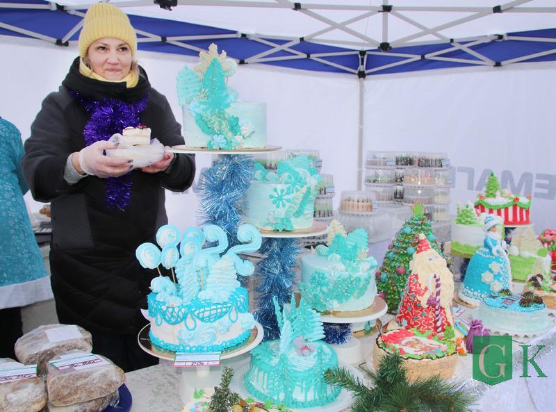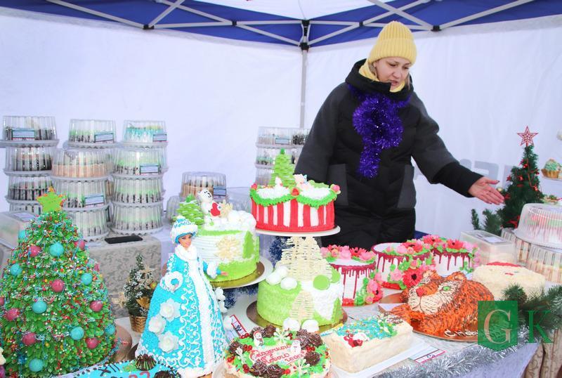 На «Рождественской ярмарке», которая проходила возле нового районного Центра культуры 28 декабря, можно было купить праздничные сладкие угощения. Мастера-кондитеры изготовили торты в виде елки, Деда Мороза, Снегурочки, Снеговика и символа Нового 2022 года — тигра.