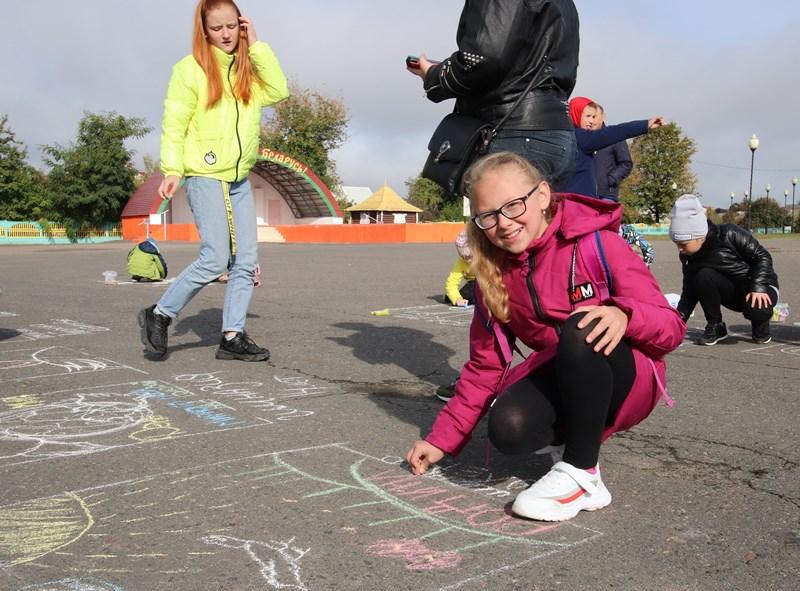 21 сентября, в Международный день мира, на центральной площади города прошел конкурс детского рисунка на асфальте «Миру-мир» с чествованием призеров и участников республиканского конкурса живописи «Счастье жить в мирной стране».