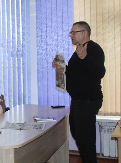 31 марта корреспондент Игорь Ковалев и редактор стилистический Светлана Савченко встретились с учащимися 10 класса районной гимназии. Об истории и буднях районной газеты, о ее сотрудниках и тематике публикаций шла речь на профориентационном мероприятии. Ребята более подробно познакомились с профессией фотокорреспондента, посмотрели фотографии, сделанные фотокором газеты Людмилой Смоляковой, и даже описали то, что увидели на снимке, уловив эмоции героев репортажа.