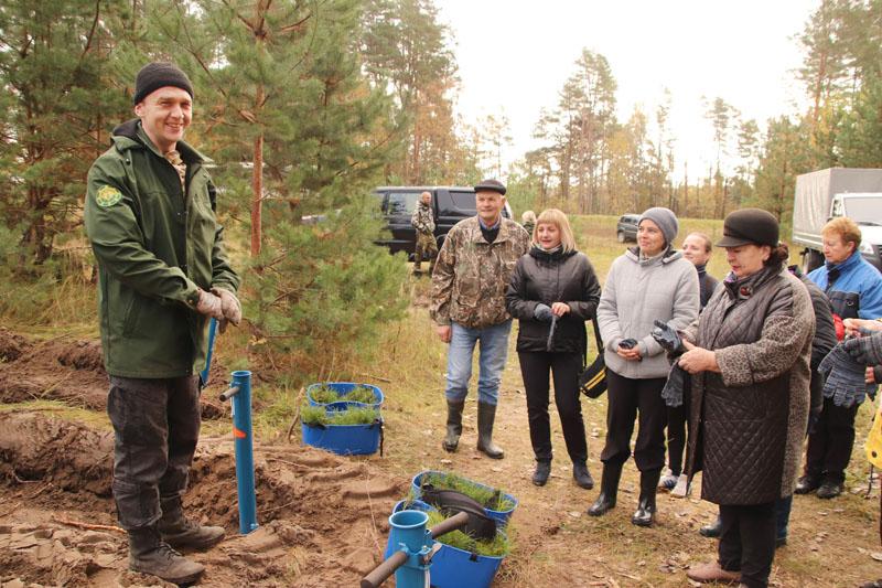 Так, в среду, 12 октября, руководство района, члены районной организации ветеранов Белорусского общественного объединения ветеранов, работники лесхоза, департамента охраны МВД, добровольцы осуществили посадку сосен и березок на территории квартала 107 Костюковичского лесничества.