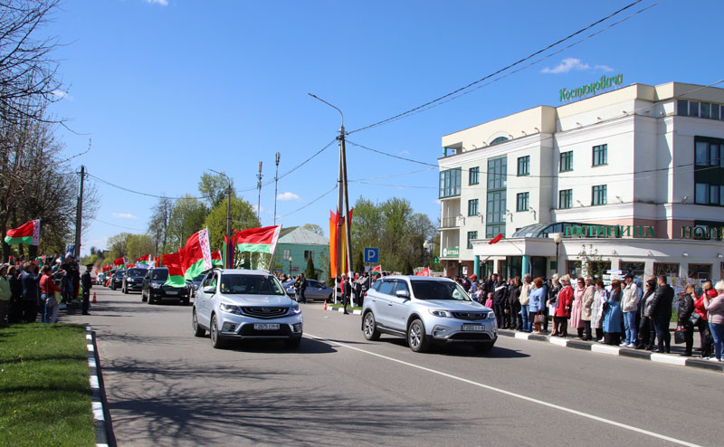 9 мая все неравнодушные граждане во главе с председателем районного исполнительного комитета Александрой Михеенко приняли участие в автопробеге по местам боевой славы «Знают и помнят потомки Великой Победы» по маршруту: Мемориал, братские могилы в урочище «Боровец» и д. Белынковичи, центральная площадь города и почтили память погибших в Великой Отечественной войне за освобождение Беларуси воинов минутой молчания, возложив цветы к подножию памятников.