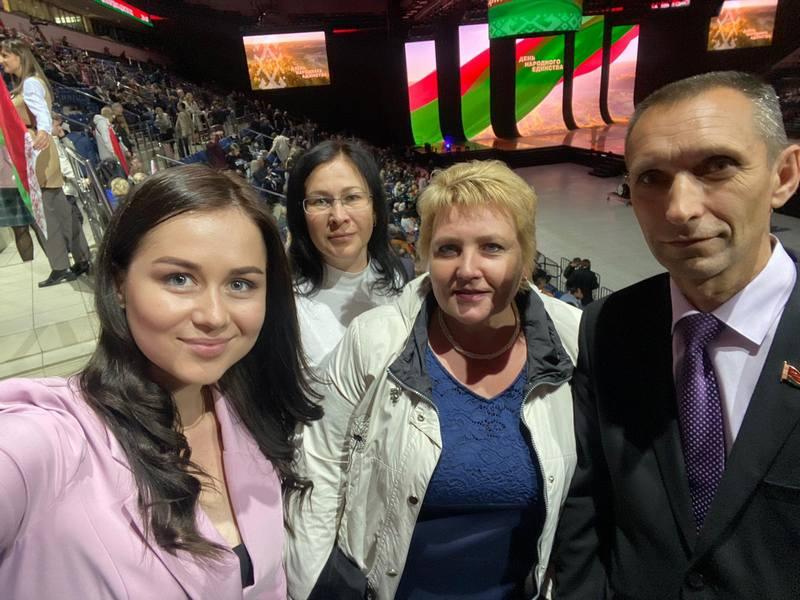 В состав делегации от Костюковичского района вошли председатель Костюковичского районного Совета депутатов Лариса Герасимова, председатель Костюковичского районного объединения профсоюзов Виктор Суденков, начальник хозяйственного отдела Белорусского цементного завода Татьяна Науменко и член Молодежного парламента при Национальном собрании Ксения Грузинова.