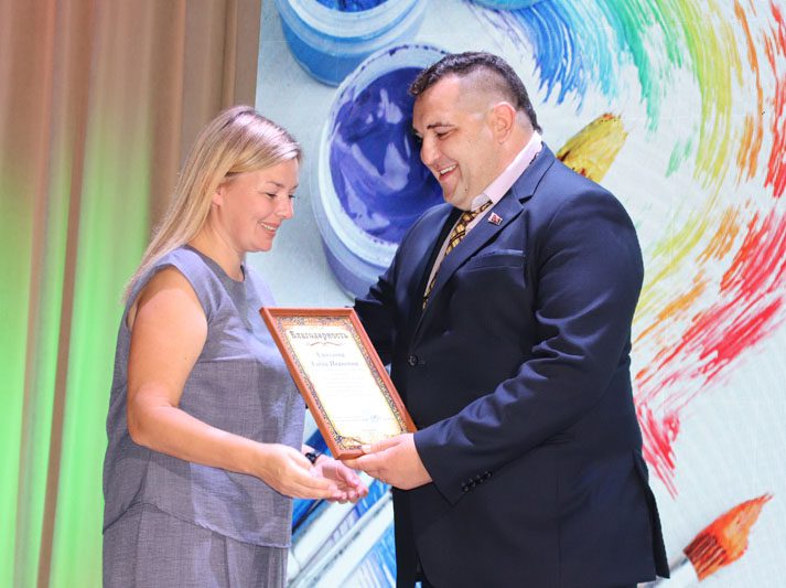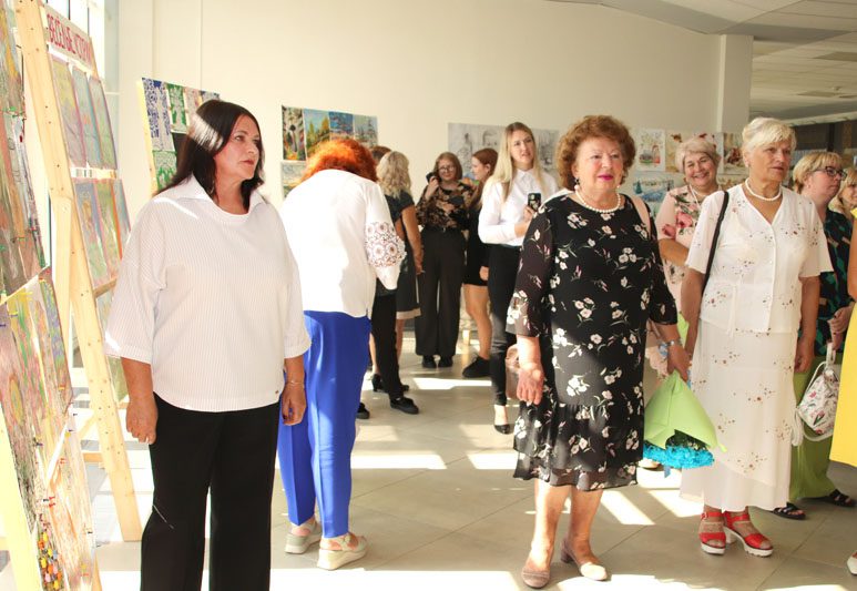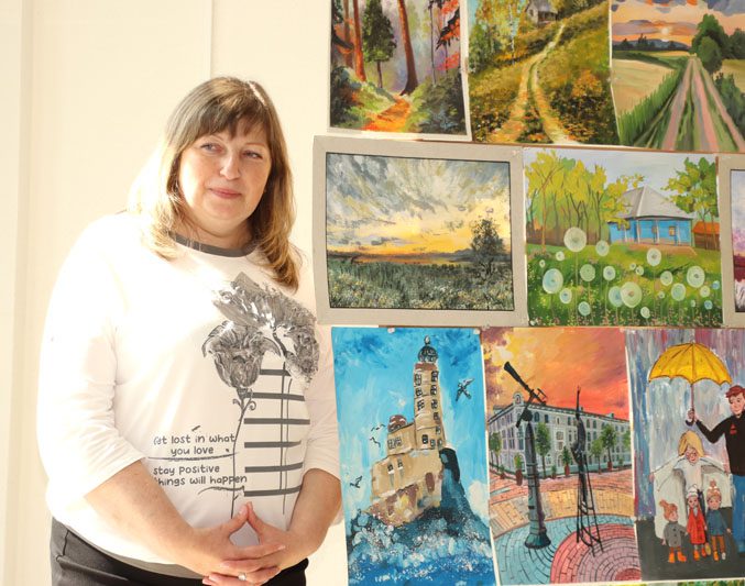 Открыла торжество выставка работ талантливых педагогов ДШИИ и не менее талантливых их учеников, которая разместилась в фойе Центра культуры. Экскурс по выставленным картинам и работам декоративно-прикладного искусства провела заместитель директора школы Ольга Лизунова.